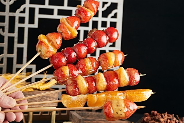 烤肉、烤鸡架、炒凉粉、糖葫芦都在喊人,脚步很难不软。