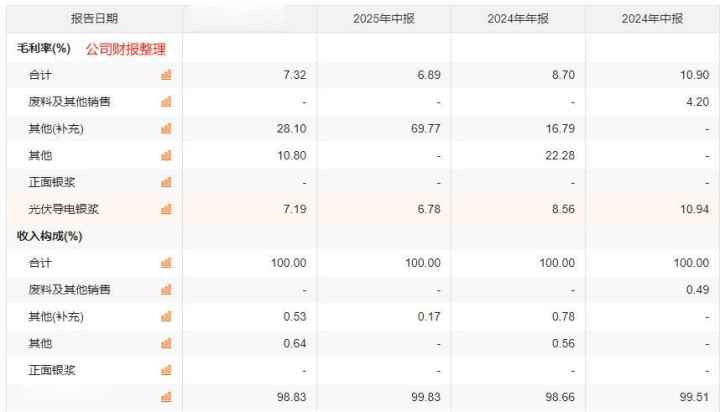 数据显示,近些年来,公司光伏银浆业务营收占比一直维持在99%以上,可见其业务的转移程度。