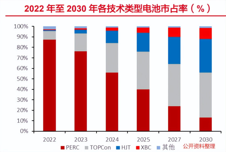 当前,光伏已经处于N型技术加速渗透阶段,预计到2030年N型新技术渗透率将超过90%。尤其是太空光伏问世后,由于HJT的成本优势,有望继续加速推动N型技术渗透。