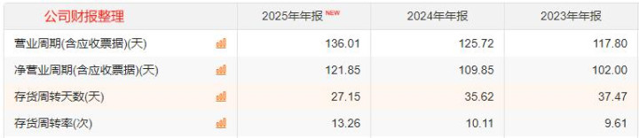 产品线丰富,叠加需求端旺盛,聚和材料营运能力也得到了提升,存货周转率从2023年的9.61次提高到了2025年的13.26次。