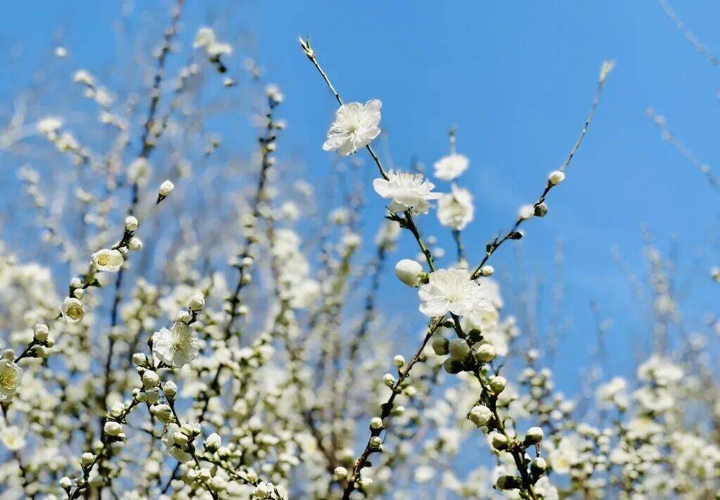 娇白映衬苍翠,新生唤醒古意